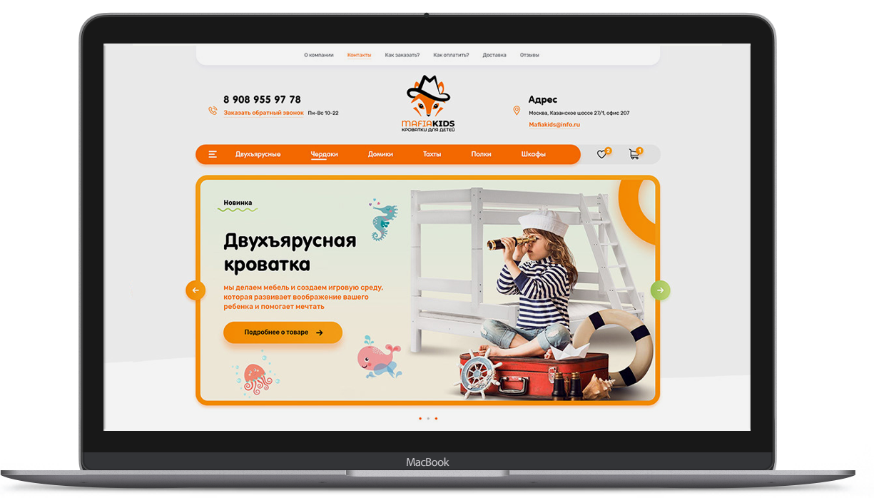 Разработать дизайн для магазина детских кроваток У клиента есть сайт. Для него нужен был редизайн. Фирма занимается производством и продажей детских кроваток и другой мебели на заказ. Заказчик не совсем мог сформулировать свои пожелания и поэтому доверился моему вкусу.